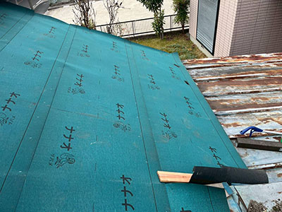 防水性能の要となるルーフィング(防水シート)を施工。