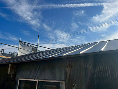 最後に、新しい屋根材(板金屋根)を施工して、工事完了です。