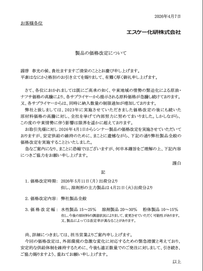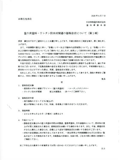 現在塗料メーカー各社から発表されている価格改定(値上げ)についてご案内いたします。