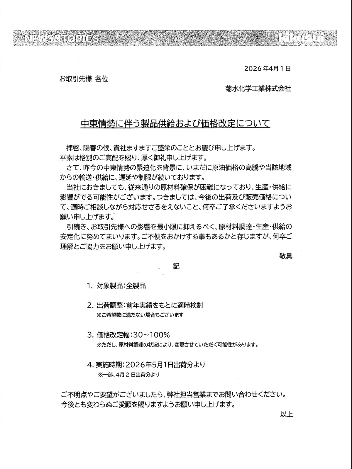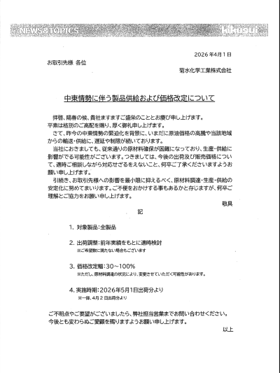 - 中東情勢による原油・ナフサ価格の高騰
