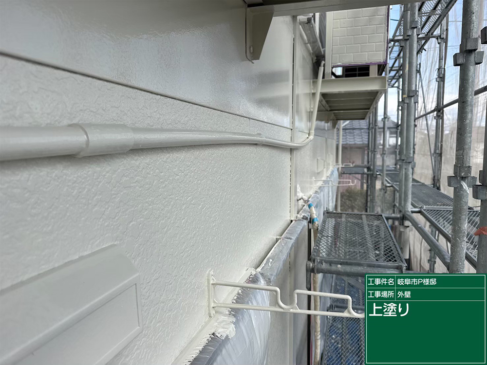 外壁塗装(岐阜市・O様邸) 外壁塗装 岐阜県岐阜市 パーフェクトシリーズND-105 写真の上でスクロールすると写真が切り替わります。 写真の上でタッチすると写真が切り替わります。 施工箇所 外壁 塗料種類 ファインパーフェクトトップ